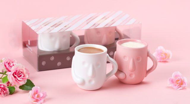 今回は、桃色と初登場の「白はにわ」マグカップに入ったバレンタイン特別バージョンの2種類の味わいで用意しました。