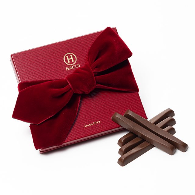 香り豊かなコーヒー豆を練り込み、はちみつのやさしい甘さのスティックタイプのチョコレート。大人の雰囲気が漂う真っ赤なリボンとパッケージ。