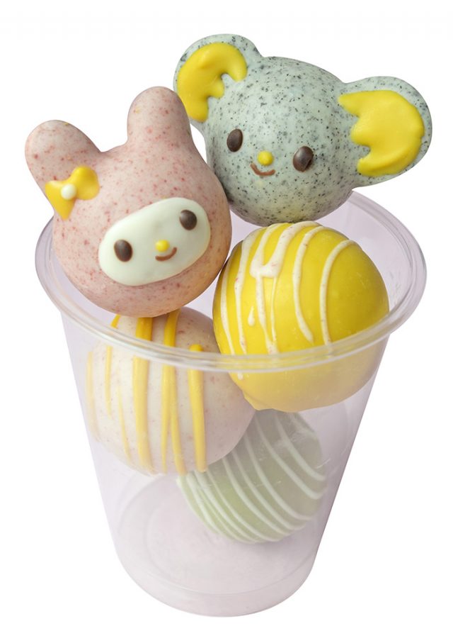 2週目の2月8日(土)〜14日(金)は、<第2弾>マイメロディの友達フラットくんと、クロミの子分バクも加えた、見た目も賑やかなコロコロドーナツをカップに入れて販売。