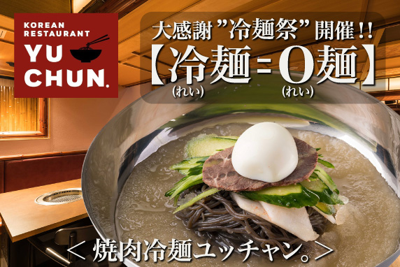 日頃の感謝を込めまして、焼肉冷麺ユッチャン。六本木店にて、2/3(月)より2/9(日)まで1周年大感謝冷麺祭を開催します。