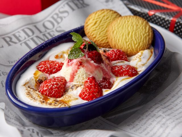 ニューヨーク発祥のご当地スイーツ「フローズンスモア」をレッドロブスター流にアレンジした一品となっています。マシュマロを焼き、とろ~りとした食感に仕上げて、冷たいアイスと一緒に頂くのは至福のひと時。ストロベリーを乗せて春らしさを加えました。溶けたマシュマロをクッキーに乗せて食べるも良し。とびきりの甘さとキュートな見た目、そしてポップな色合いがチャームポイントとなっています。バレンタインデーやホワイトデーにもぴったりのデザートが完成しました。季節限定の美味しさを楽しめるようになっています。