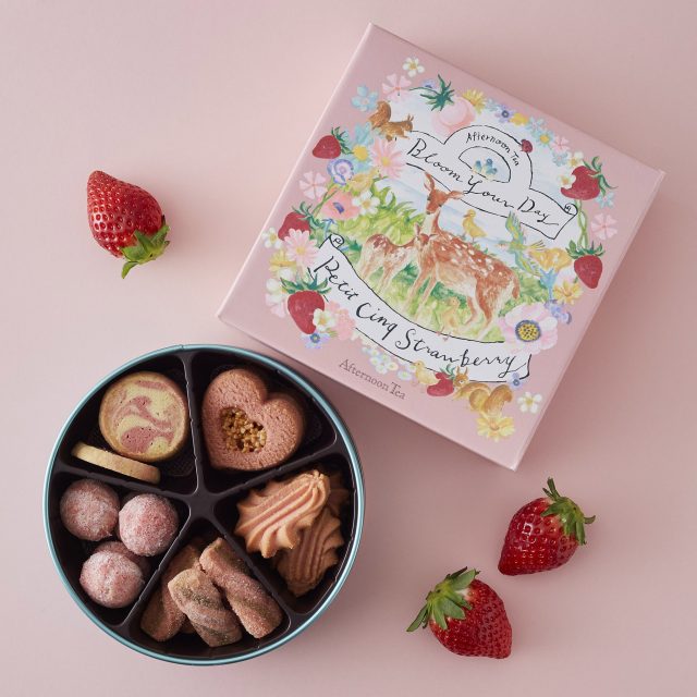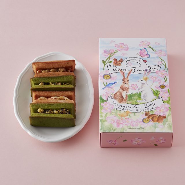 鹿児島県産の緑茶をベースにグリーンルイボスティーをブレンドし、桜とフランボワーズのフレーバーで華やかな香りに仕上げ、桜の花びらと桃色のルバーブチップをちりばめた「桜グリーンティー&ルイボス」など春におすすめのお茶3種が登場。ティータイムにお茶と一緒に楽しみたい焼き菓子は、さくらと抹茶のフィナンシェが楽しめる「フィナンシェサンドボックス さくら&抹茶」、苺づくしのクッキーが5種詰め合わせになった「プチサンク ストロベリー」など春らしい商品がそろいます。