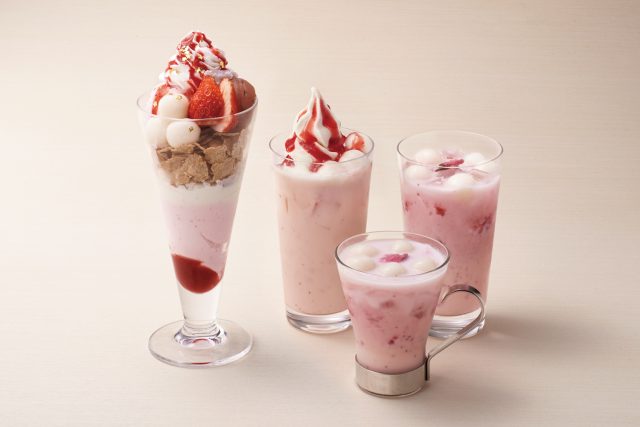 桜とストロベリーを組み合わせたパフェとドリンクが、2月15日から期間限定で登場。