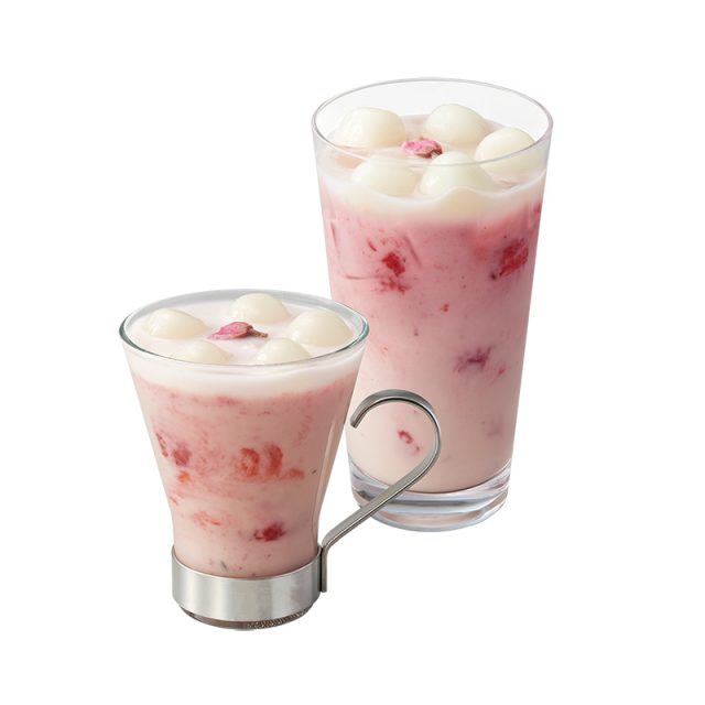 温かいドリンクは、ほんのり香る桜の風味と苺の甘さが合わさり、まろやかで優しい味わいに。
