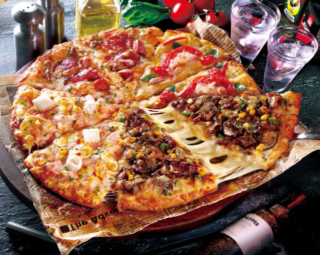 その他にも、熟成ペッパーソーセージやイタリアンサラミなど4種のミートを使用した『熟成ミートラバー』、2種のトマトとバジルで素材の良さが際立つ『フレッシュトマト&バジル』、本場博多の明太子を使用した『もち明太子ピザ』の4種類が1枚で楽しめます。