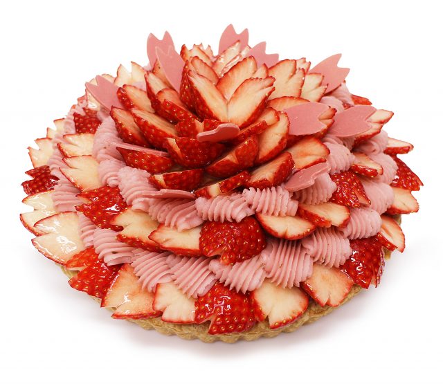 桜の花びらに見立ててカットしたいちごと、香り豊かな桜あんのクリームを合わせ、華やかに咲き誇る満開の桜をイメージして飾られています。 プライス:950円(銀座店 1,100円)