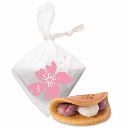 刻んだ桜葉入りの白あんと柔らかな求肥を、もちもち生地で包んだ香り豊かなどら焼き。販売:4月上旬まで