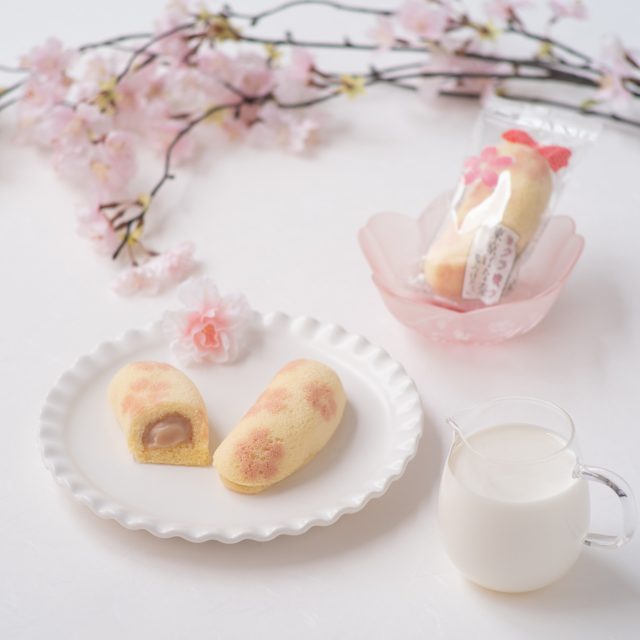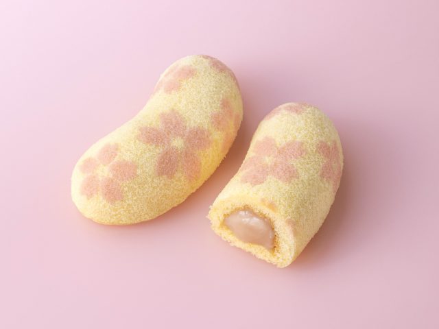桜をまとって、可愛くおめかし。いつもの東京ばな奈のふかふかスポンジケーキを、可愛い桜模様に焼きあげました。中には、とろ〜りと桜が香るバナナカスタードクリームをやさしく包み込んでいます。このかわいい見た目と美味しい味わいから、発売開始25日間で100万個を販売しました。パッと箱を開ければ、咲き誇る満開の桜。