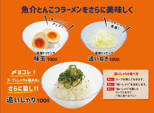 さらにトッピングでは『味玉』『追いねぎ』、そして最後の〆にぴったりの『追いしゃり』も提供します。