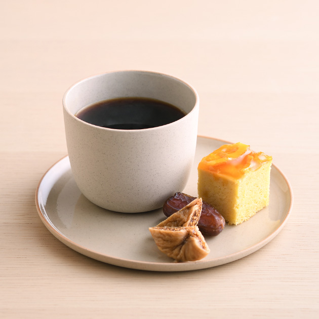 こだわりのドライフルーツと一口大の焼き菓子とともに、食後のドリンクは、丸山珈琲のオリジナルブレンドコーヒー、紅茶、ハーブティーから選べるようになっています。フルーツと焼き菓子、こだわりのドリンクで、最後のひとときまで楽しめるようになっています。