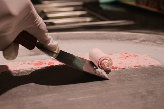 ロールアイスとは、マイナス20度以下のコールドプレートの上に、液状のアイスベースを乗せ、固まったものを薄く伸ばして丸めたアイスの事です。同店では、オリジナルのアイスベースに、様々なフルーツやチョコなどを追加することで、多様なメニューを用意しています。今後は、異業種とのコラボフレーバー、限定メニューなども展開予定!
