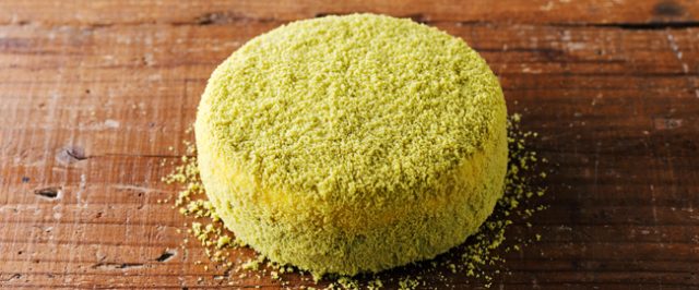 表面を覆うクラムにも宇治抹茶をプラス。鮮やかな色合いは、見た目からも存分に抹茶を楽しめる仕上がりです。