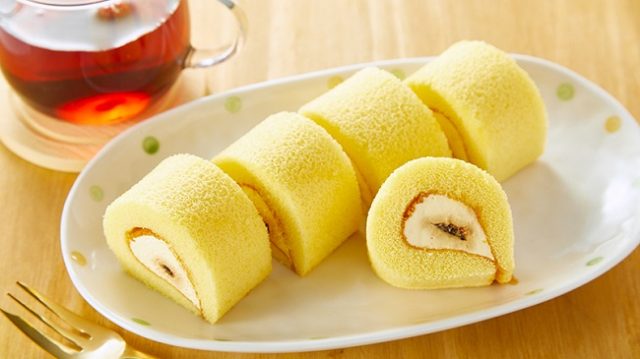 5枚入りでシェアして食べられる「切れてるロールケーキ」の新フレーバーとなっています。しっとりとしたスポンジ生地に、プリン風味のクリームとほろ苦いカラメルソースを絞りました。一口食べると濃厚な味わいが口いっぱいに広がるようになっています。