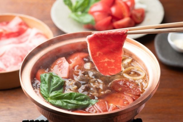 一人しゃぶしゃぶの【しゃぶしゃぶ 山笑ふ】季節限定「国産牛リブロースと玉ねぎのトマトすき焼き」販売
