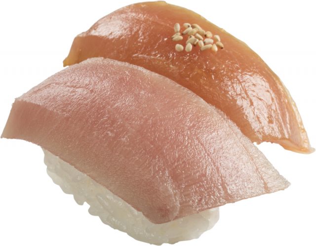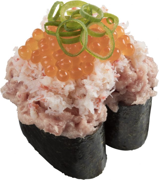 フェア第一弾に登場する「こぼれるいくら」は人気のいくらを軍艦から溢れるほど盛り付けており、いくら好きにはたまらない逸品となっています。「A5ランクのローストビーフ」は、その名の通り贅沢にもA5ランクの国産黒毛和牛をローストビーフにしたお寿司となっています。肉に脂が細かく入っているためしっとりとしながらも噛むほどに黒毛和牛の旨みが広がるようになっています。また、「大切りまぐろ」は色味が強いまぐろの赤身を厳選し、食べごたえ抜群の大切りで提供します。ほかにも、「びん長大とろ2貫」などを取り揃えています。
