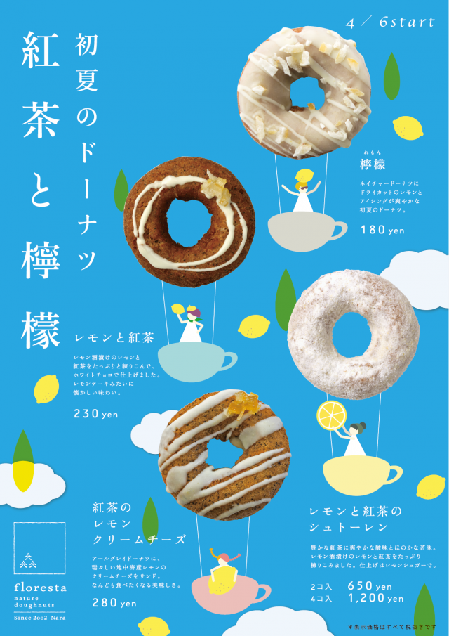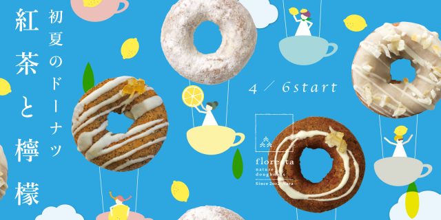 手作りドーナツ専門店 フロレスタから、見た目も味もさわやかな初夏のドーナツ4種「紅茶と檸檬」を、4月6日(月)から5月31日(日)までの季節限定商品として販売します。