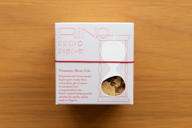 「RINO」は台風被害を免れ収穫することができた長野県産のリンゴ(サンふじ)入りのグラノーラ。