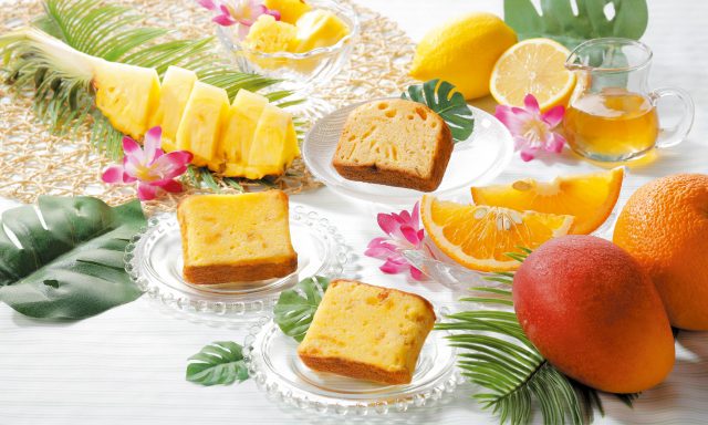 今年は、昨年特に人気が高かった「はちみつレモンケーキ」に加え、2種のフレーバーの組み合わせで美味しさをさらにアップした「マンゴー甘夏ケーキ」、南国感を味わえる「パインココナッツケーキ」が新登場します。
