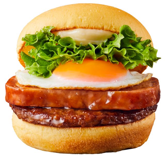 「オリジナルパティ」の上にハワイで人気の「スパム」(ポーク)をこんがりと焼き、隠し味にこうじを加えた甘辛い「特製テリヤキソース」をたっぷりと絡めトッピング。「目玉焼き」、「グリーンカール」、「マヨネーズ」と一緒にかぼちゃを練りこんだ「パンプキンバンズ」でサンドしました。
