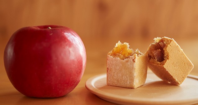 独自の製法でりんごを低温で煮詰め、りんごそのままのフレッシュな甘酸っぱさとシャクシャクした食感を閉じ込めました。