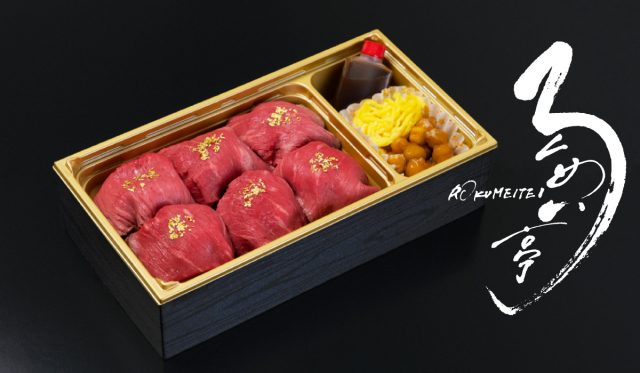 元祖ローストビーフ手毬寿司「ろくめい亭」は、有名レストラン監修のシェフが、こだわり抜いた柔らかい葡萄牛を熟練した技術でひとつひとつ調理して盛り付けを行っているお弁当となっています。
