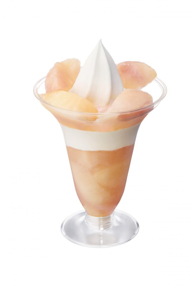 収穫後、追熟を行い完熟させたジューシーで香り高い白桃が、過去最高重量※1になって新発売です。4月に新しくなったソフトクリームバニラと、柔らかジューシーな完熟白桃のコラボレーションを楽しめるようになっています。