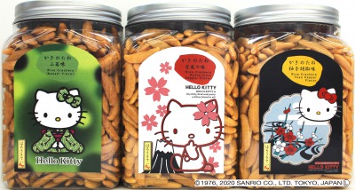 商品名 : ハローキティポット柿の種ゆずこしょう味、わさび味、京風七味味