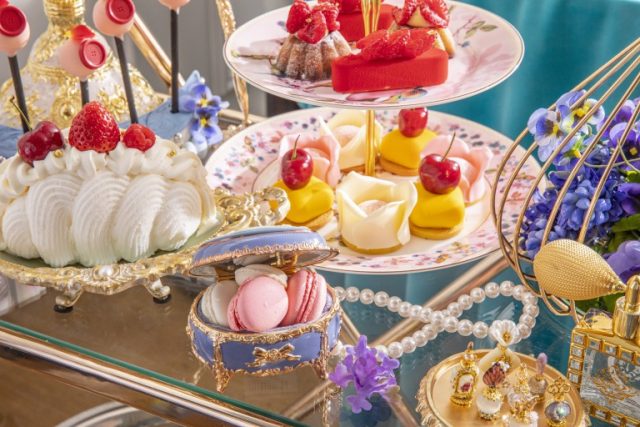 デザートはホテル1階「マーブルラウンジ」で開催中のデザートフェア『マリー・アントワネット スイーツ・オートクチュール』よりシェフ選りすぐりのデザートをワゴンサービスにて届けます。