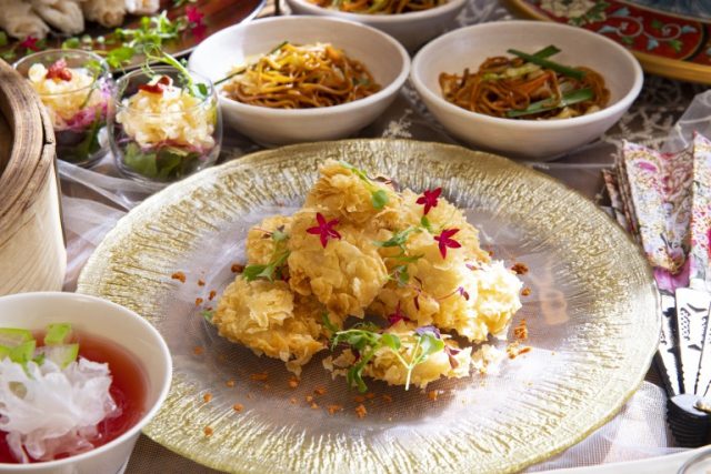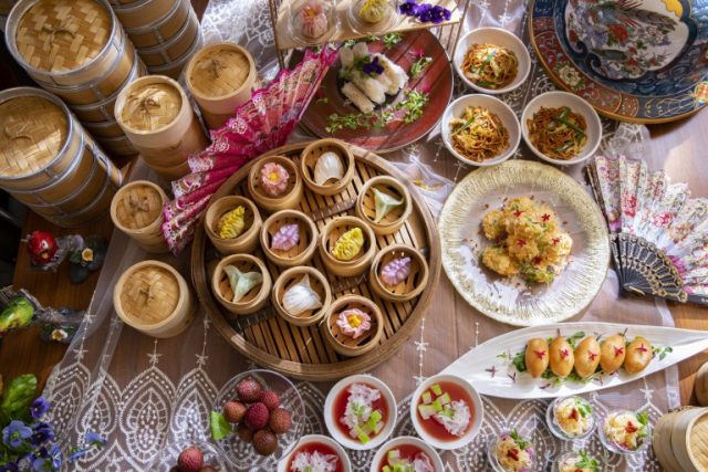 中国四大美人の一人で、傾国の美女として知られる楊貴妃、そしてフランスの薔薇と称されたフランスの王妃マリー・アントワネットから着想を得た二人の料理人による点心&スイーツのランチは、一人¥3,500(土・日・祝日は¥3,900)で期間中毎日楽しめるようになっています。