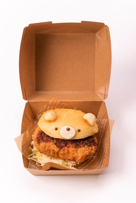 クマに見立てたたまごサンドにコロッケを挟み、かわいくてインパクトのあるサンドイッチに仕上がりました。とろけるたまごサンドは、“しずる感のある全く新しいたまごサンドを作りたい”という思いから八天堂が開発した商品となっています。パンにはくりーむパンの生地を使用しています。しっとりとした食感のパンに、後から手作業でたまごサラダを注入し、これまでにない柔らかさを実現。くちどけの良い新感覚のたまごサンドと、間に挟んだほくほくのコロッケは相性抜群となっています。ボリューム感はありますが、シャキシャキとしたキャベツもたっぷりと入って、ついついもう一個食べたくなる商品となっています。なお、クマの目・鼻にはチョコレート、耳にはナッツを使用しています。