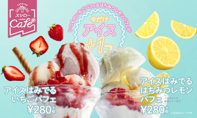 株式会社あきんどスシロー(本社:大阪府吹田市、代表取締役社長:堀江 陽)は、“スシローカフェ部”から、定番スイーツとして人気のパフェ「練乳いちごパフェ」、「爽快はちみつレモンパフェ」に、通常はアイスが2個のところ、この夏限定でアイスを1個プラスした「アイスはみでる いちごパフェ」、「アイスはみでる はちみつレモンパフェ」を、通常とお値段変わらず、7月22日(水)より全国のスシローにて期間限定で販売します。