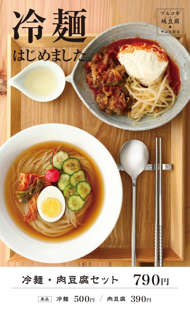 とんかつ専門店「かつや」などを展開するアークランドサービスホールディングス株式会社の子会社、アークダイニング株式会社は、スンドゥブ定食専門店「プルコギ純豆腐 中山豆腐店」にて7月20日(月)より、夏メニュー「冷麺」の販売を開始します。
