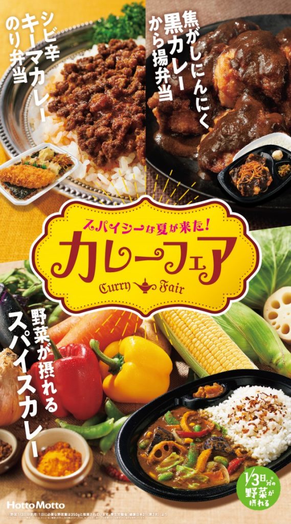 「ほっともっと」では、人気商品を夏にピッタリのカレー仕立てにした、新味『シビ辛キーマカレーのり弁当』390円と、『焦がしにんにく黒カレーから揚弁当』470円を、8月4日(火)より新発売します。また、1日に必要な野菜の1/3を摂ることができる『野菜が摂れるスパイスカレー』490円も同時発売します。