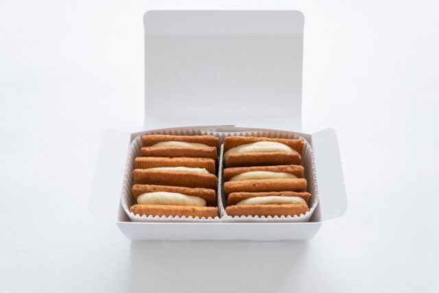 サブレの間に挟むバタークリームは「焼く・焦がす・溶かす」加工を終えた素材を組み立てる「焼かないバターケーキ」で培った独自の製法で、素材としてのバターから食べるバターへと昇華。