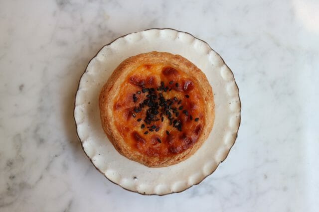 自慢のサクサクのパイ生地に、プリンのような濃厚なめらかカスタードクリームがたっぷり詰まった贅沢な一品です。