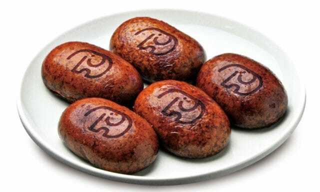 各店舗で販売する人気のサイドメニュー。和スイーツのかんりんとう饅頭をどむぞうくん焼印入りバージョンで、浅草花やしき店限定販売。カリッとした食感が人気の秘訣。