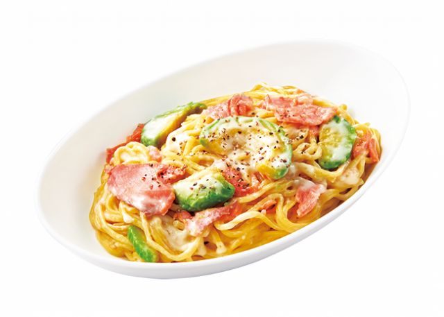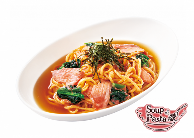 ファーストキッチンで大人気の熟成明太子ソースに旬の食材である北海道産秋鮭を使用したスモークサーモンとほうれん草を加えたパスタです。九州柚子胡椒を効かせ、1週間熟成させた明太子ソースはまろやかな風味と程よい辛さが後を引きます。組み合わせた和風出汁にはかつお・昆布・あごの3種類の旨味をたっぷりと効かせ、程よく醤油でアクセントを付けました。