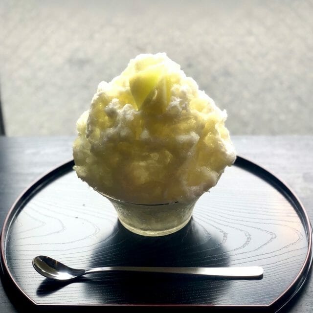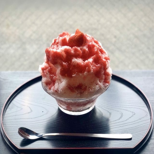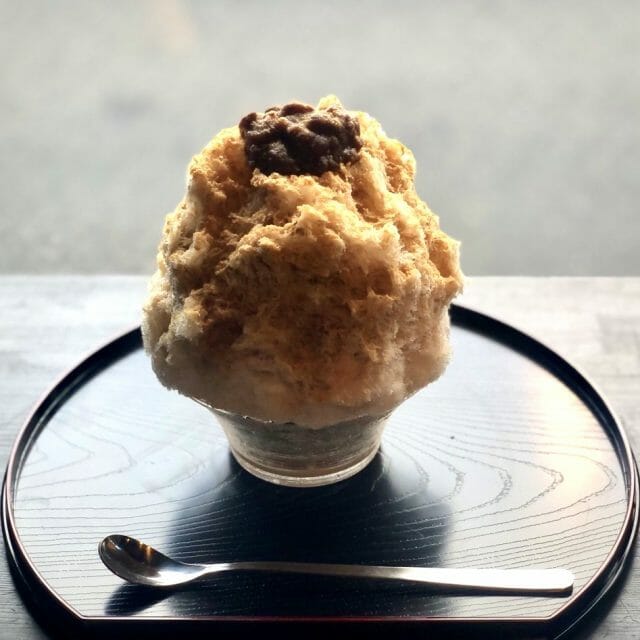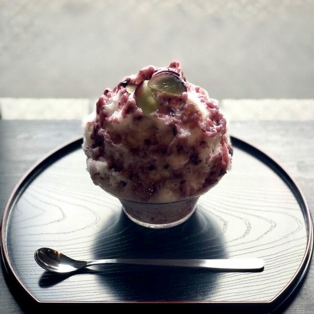 仕上げに北海道産の大納言小豆のつぶ餡をトッピングした和のかき氷。