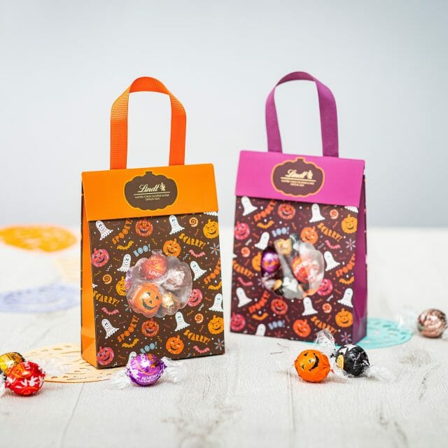 カラフルな「リンドール」が覗くバッグに、「リンドール ハロウィン」「リンドール ゴースト」をはじめ、「リンドール」の人気フレーバー6種をアソート。