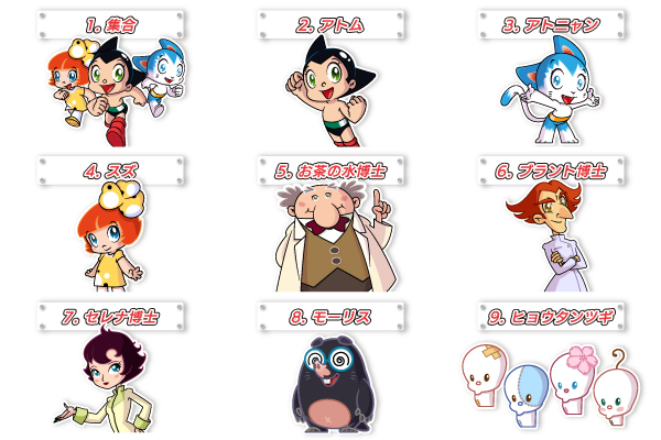 集合・アトム・アトニャン・スズ・お茶の水博士・プラント博士・セレナ博士・モーリス・ヒョウタンツギ