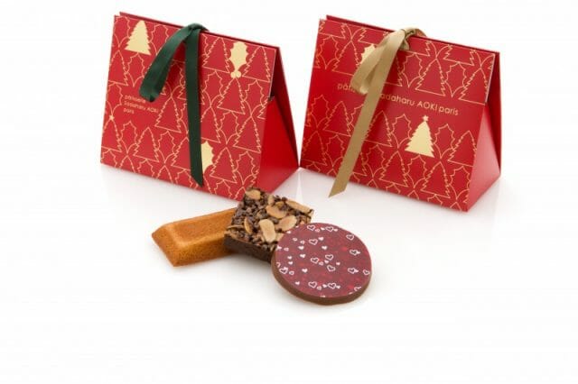 スペイン産アーモンドを使用しサクッと軽やかな食感に焼き上げたマカロン生地に、素材の風味を活かしたなめらかなクリームをサンドしたアオキのスペシャリテ。日本でも本場パリの美味しさを楽しんでもらいたいというアオキの強い思いから、素材と製法にこだわり抜いた自慢のマカロンをパリ直輸入で用意しています。そのマカロンの詰め合わせボックスを限定パッケージでクリスマス仕様に。クリスマス気分を盛り上げてくれます。