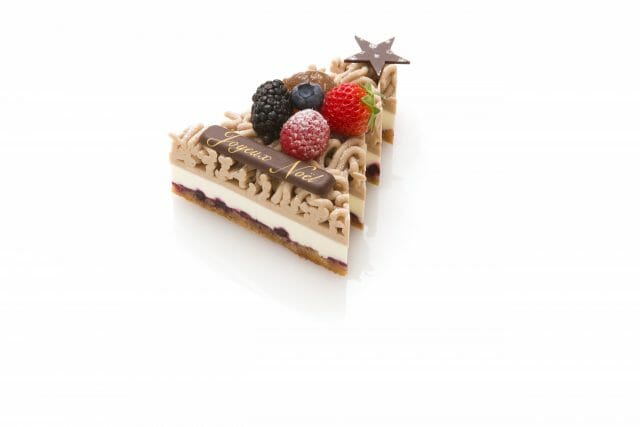栗の甘みをぎゅっと凝縮したマロンクリームと赤いフルーツの酸味のバランスが絶妙な「サパン マロン フリュイ ルージュ」は、サパン(モミの木)型のキュートなケーキ。