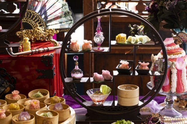 傾国の美女として知られる唐代の王妃 楊貴妃、フランスの薔薇と称されたフランスの王妃マリー・アントワネットに加え、中国三大悪女の一人としてはもちろん、激動の清王朝で絶大な権力を握った西太后から着想を得た二人の料理人による点心&スイーツのランチは、一人¥3,800(土・日・祝日は¥4,200)で期間中毎日楽しめるようになっています。ゆったりと間隔をとった店内で楽しむ点心&スイーツランチは、今までのビュッフェ形式からワゴンスタイルで提供します。各テーブルにはアンティーク調の茶器の飾り棚が配され、クラシカルな雰囲気の中、深まる秋の優雅な午餐会を楽しめるようになっています。