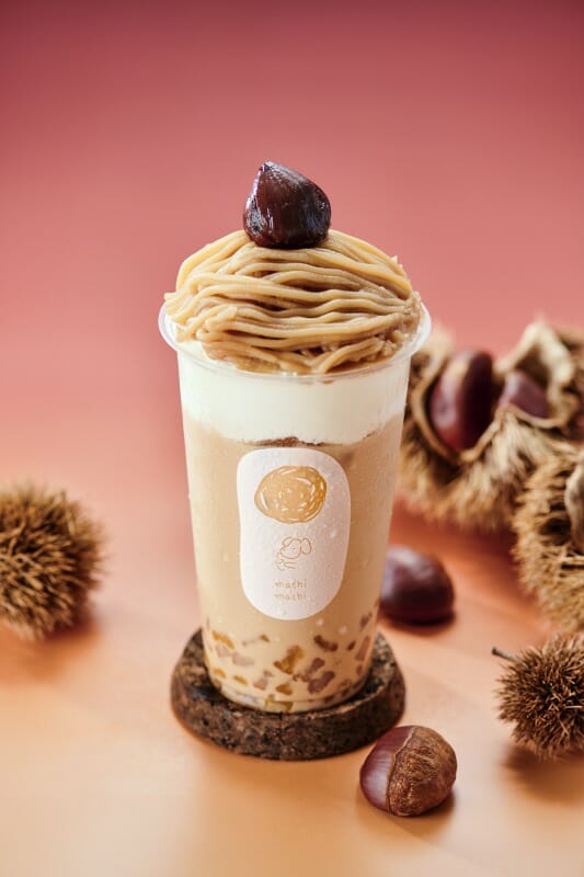 machi machiの秋の新商品は、定番人気商品「プレミアムチーズミルクティー」に、熊本県産和栗を使用したモンブランクリームと、ごろっと贅沢に渋皮栗をトッピングした、まさに「モンブラン×チーズティー」のハイブリッドなデザートドリンクになります。さつまいも入りのタロイモボールもトッピングされているので、秋の味覚を贅沢に感じることができるようになっています。machi machi自慢の程良く塩味のきいたチーズソースと、上品な甘さのモンブランクリームの相性が抜群なので、期間中に是非一度は試してもらいたい一品となっています。