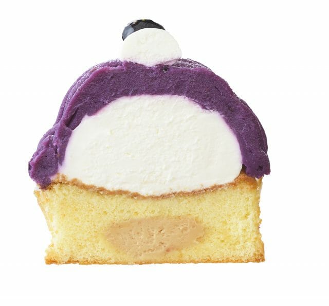 上品な甘みとねっとりした食感が特長の沖縄産紅芋を使ったモンブラン。たっぷり絞った紅芋餡、ほんのり酸味のチーズクリーム、やさしい味わいの黒糖入りカスタードが相性抜群です。仕上げにかのこ豆と金粉を飾りました。