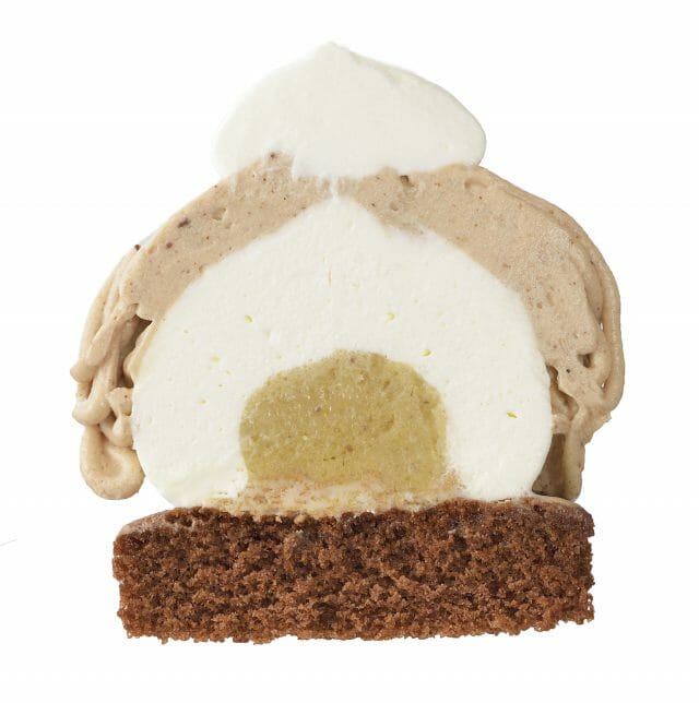 ラム酒が香る大人のモンブラン。渋皮栗クリームの中にはコクのある熊本産和栗ペーストが隠れています。ホワイトチョコクランチの食感をアクセントに添えて。あふれる栗感が贅沢なひとときを演出します。