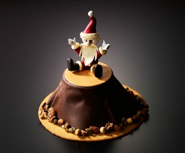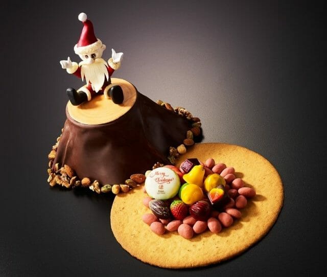 パティシエがチョコレートで丁寧に作った高さ約23cmの愛らしいサンタクロースが乗った切り株を開けると、艶やかなボンボンショコラが現れます。サプライズとしてプレゼントにもおすすめのチョコレート細工です。