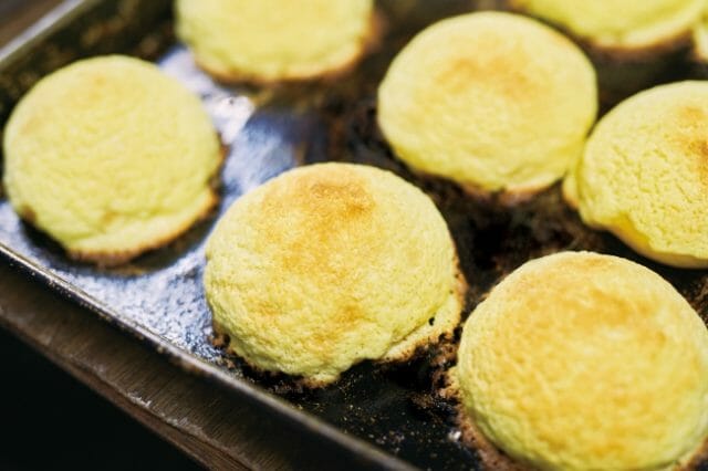 グランディールで長年愛されてきたメロンパン。卵黄仕立てのさっくりとしたメロン皮と、生地に贅沢に包み込んだバター。素朴でありながらもコク深い味わいが人気の秘訣です。