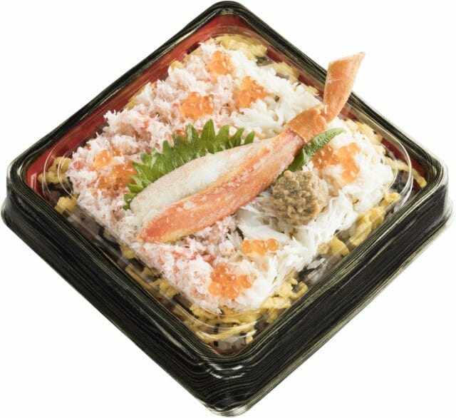 今年の『かに祭』では、持ち帰り限定で「かにちらし」を提供します。本ずわい蟹、紅ずわい蟹の身をたっぷりとのせ、かに味噌やいくらをトッピングした、豪華なちらしとなっています。
