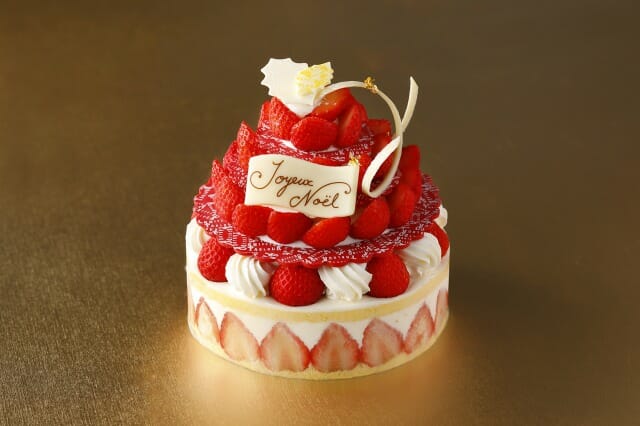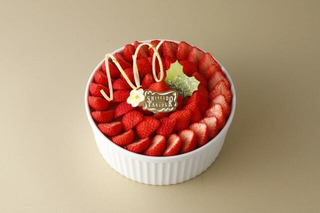 資生堂パーラー自慢のふんわりとした軽い口どけの真っ白な生クリームに真っ赤な苺をふんだんに盛り付け、チョコレートでツリーのようにデコレーションしたショートケーキ。